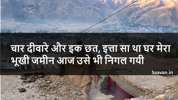 चार दीवारे और इक छत Mukul Gagrani 10 years ago चार दीवारे और इक छत, इत्ता सा था घर मेरा भूखी जमीन आज उसे भी निगल गयी