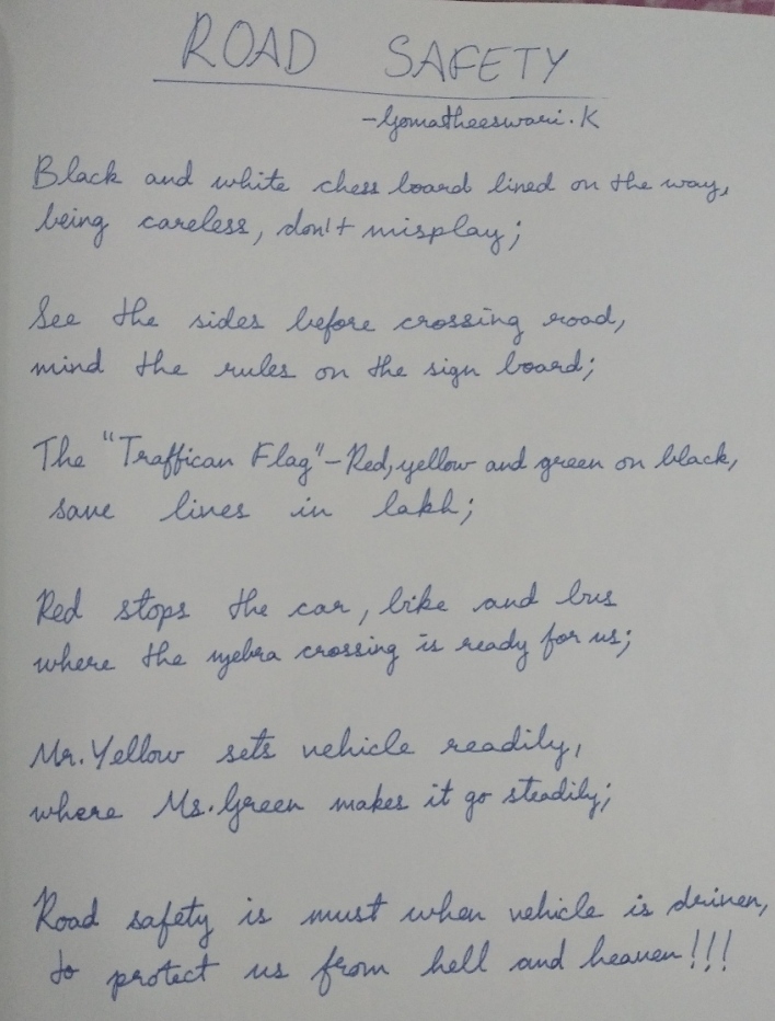 Road safety poem by Gomatheeswari