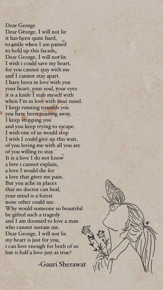 Dear George Dear George, I will not lie it has been quite hard, to smile when I am pained to hold up this facade. Dear…